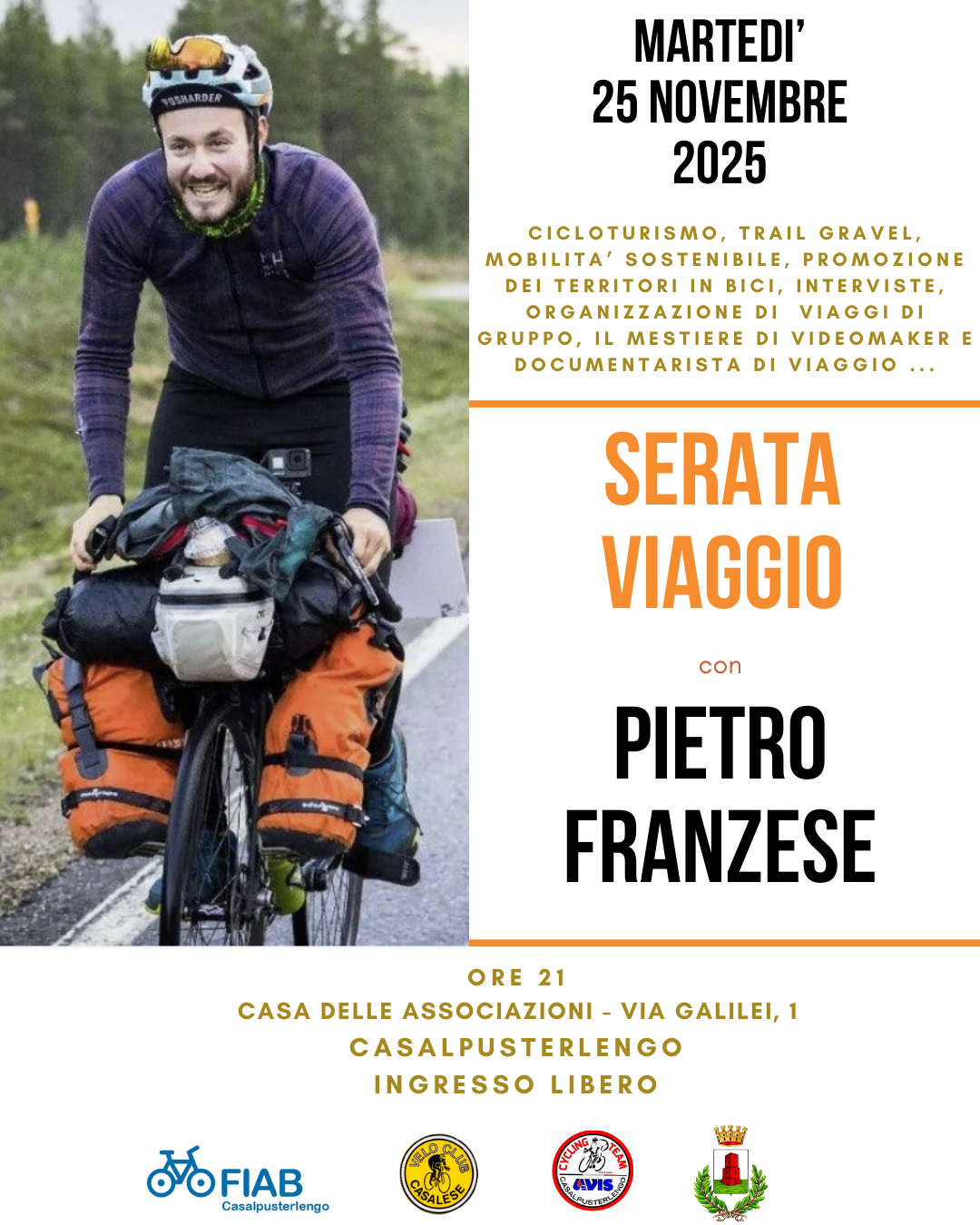 SERATA VIAGGIO - FIAB CASALPUSTERLENGO - MARTEDI' 25 NOVEMBRE ORE 21
